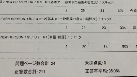 定期テストは90点以上、もしくは学年平均値より+20点以上の得点の時は、ご褒美として細やかではございますが、選べる文房具のプレゼントがございます。これに該当しなかった場合は、直近の英語の順位よりも20%以上アップした場合はご褒美対象としております。